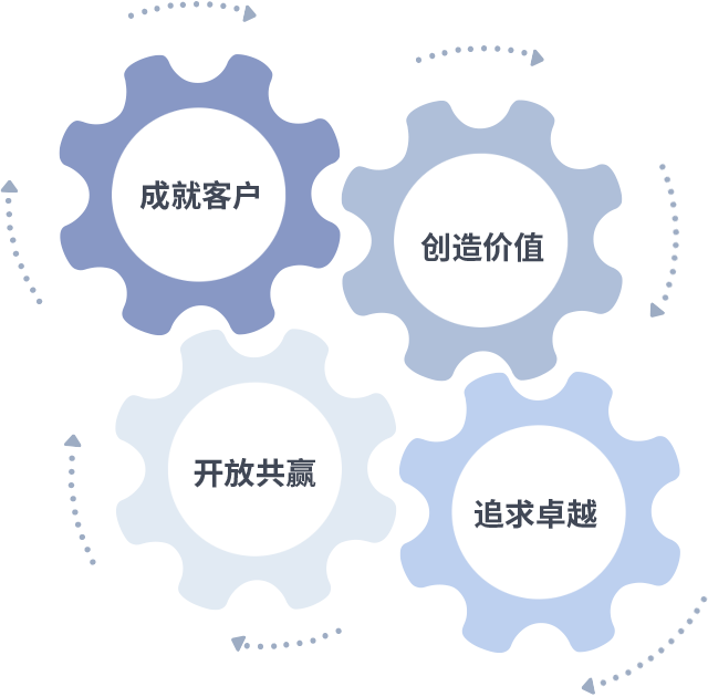 成就客户是一切决策的出发点,创造价值是衡量所有工作的标准,追求卓越是MK体育做事做人的态度,开放共赢是MK体育的格局也是最终的结果。价值观的齿轮环环相扣,推动着组织里的每个人不断向前。